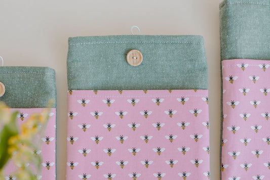 Bee Pattern Book Sleeve with Pocket - Book Protector - Book Gift - Book Cover - E-reader Cover - Spring Book Sleeve