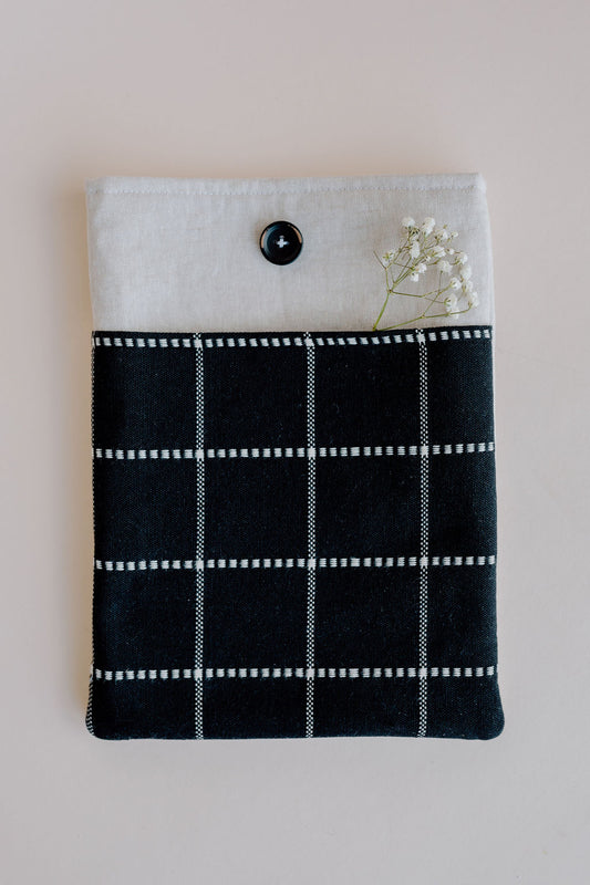 Black Plaid Book Sleeve with Pocket - Book Protector - Book Gift - Book Cover - E-reader Cover - Spring Book Sleeve