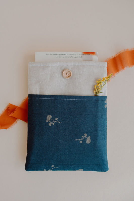 Simplistic Steel Blue Floral Book Sleeve with Pocket - Book Protector - Book Gift - Book Sleeve - Neutral Colored Book Sleeves
